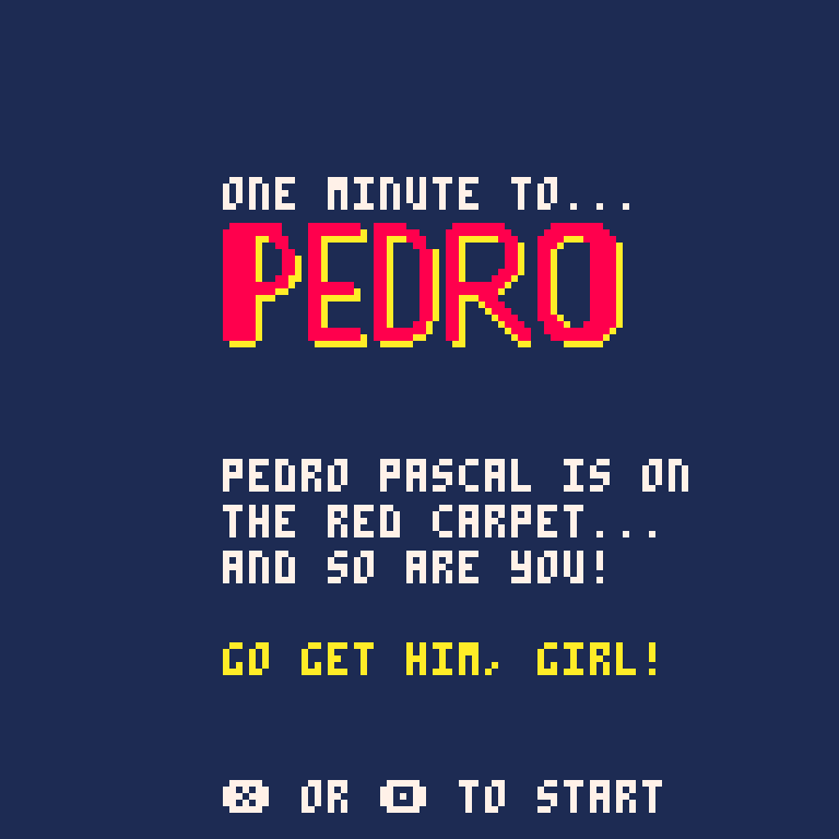 | Tags | 2D, 8-Bit, celebrity, Female Protagonist, Lesbian, one-minute, pedro-pascal, PICO-8, Pixel Art, Singleplayer |
